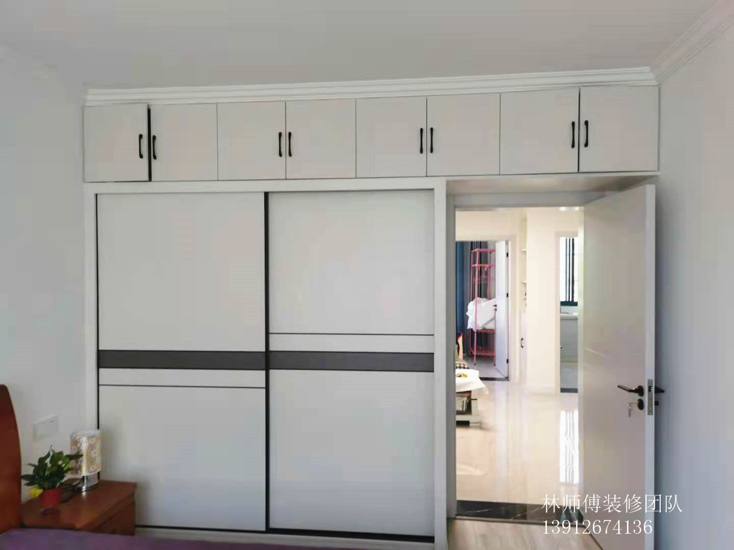 兩個臥室的設(shè)計都是以干凈舒適為主。衣柜的頂部做了一排吊柜,平時用來收納不常用的衣物或被褥。