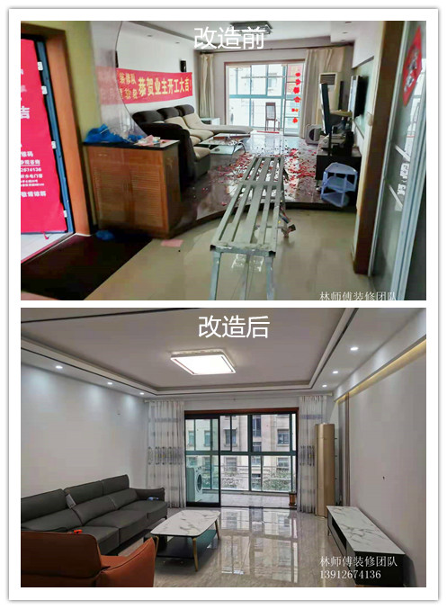 這是一套二手房改造實景案例,改造前后對比明顯。改造前的風格、顏色都比較陳舊,但是通過改造后,瞬間讓人眼前一亮。白色墻面整潔明亮,深色門框、家具沉穩大氣,更符合現代人的審美。