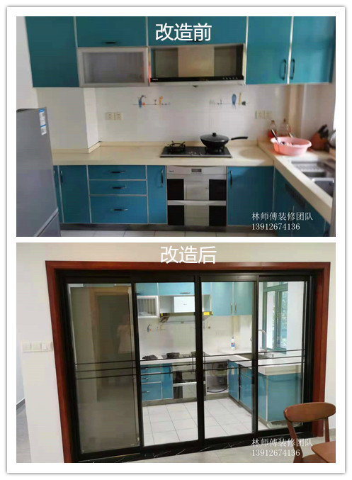 廚房沒有做過多改動,重新做了移門。雙移門空間更大,通透性更好。