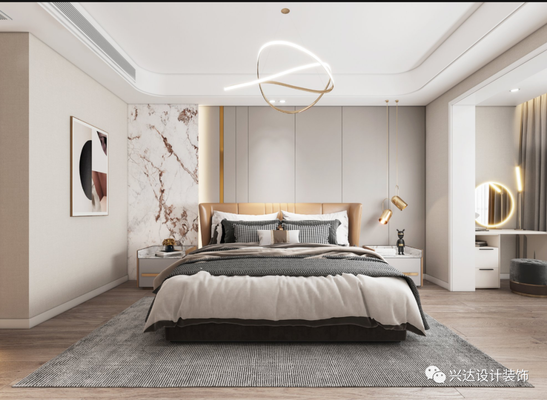 在這套142平米的裝修案例中,整體以輕奢風格的大方空間格調,搭配上現代優雅的家具細節與軟裝布置,營造出一種淡雅而又端莊的檔次氛圍,在舒適的生活中點亮了舒適從容的居住體驗感。