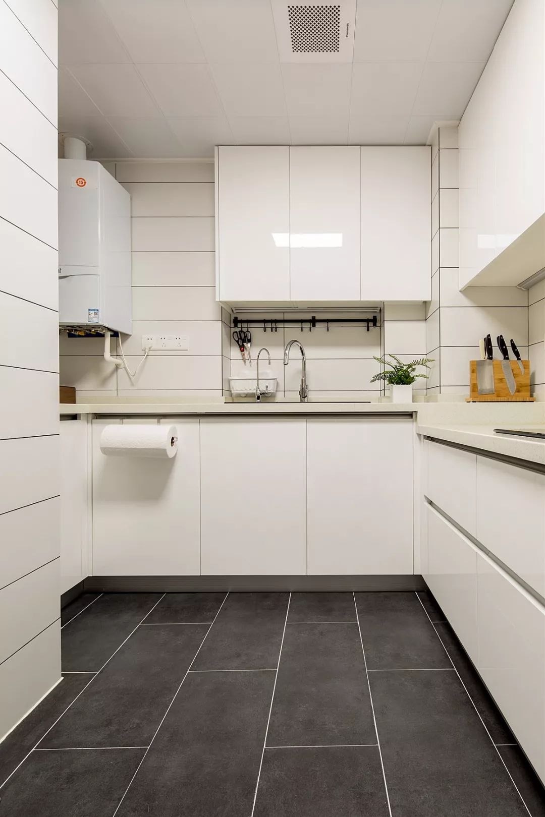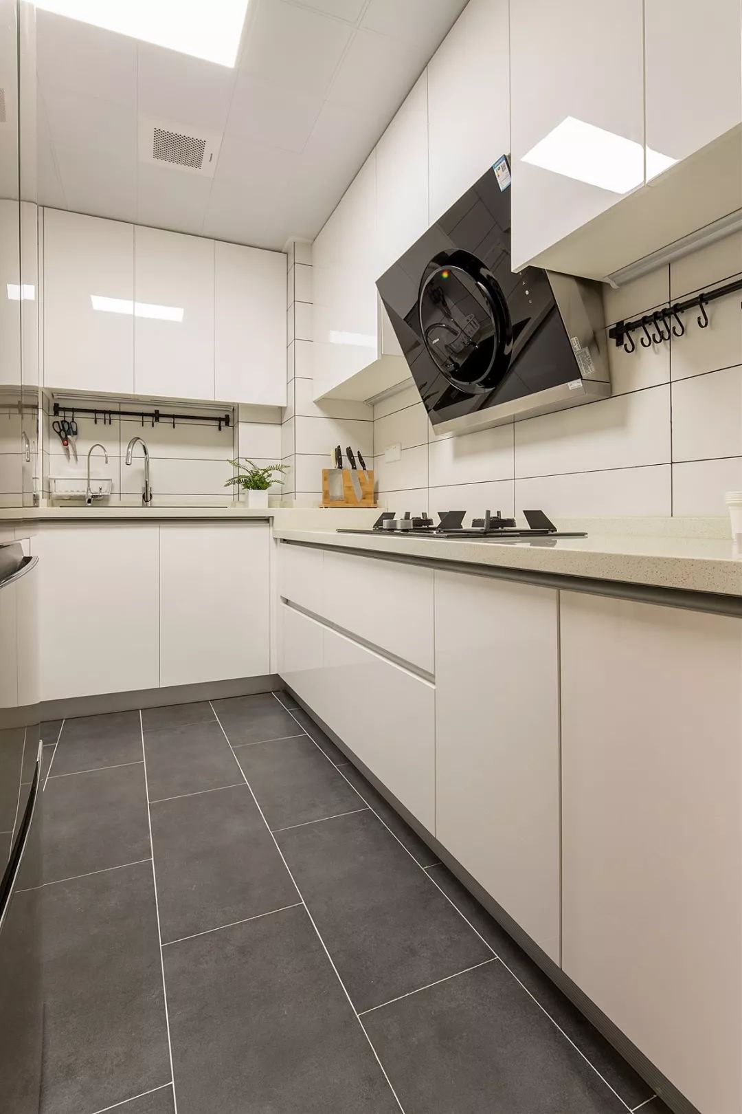 跨入廚房,黑白灰搭配,配上隱藏的拉手,滿足廚房的收納需求