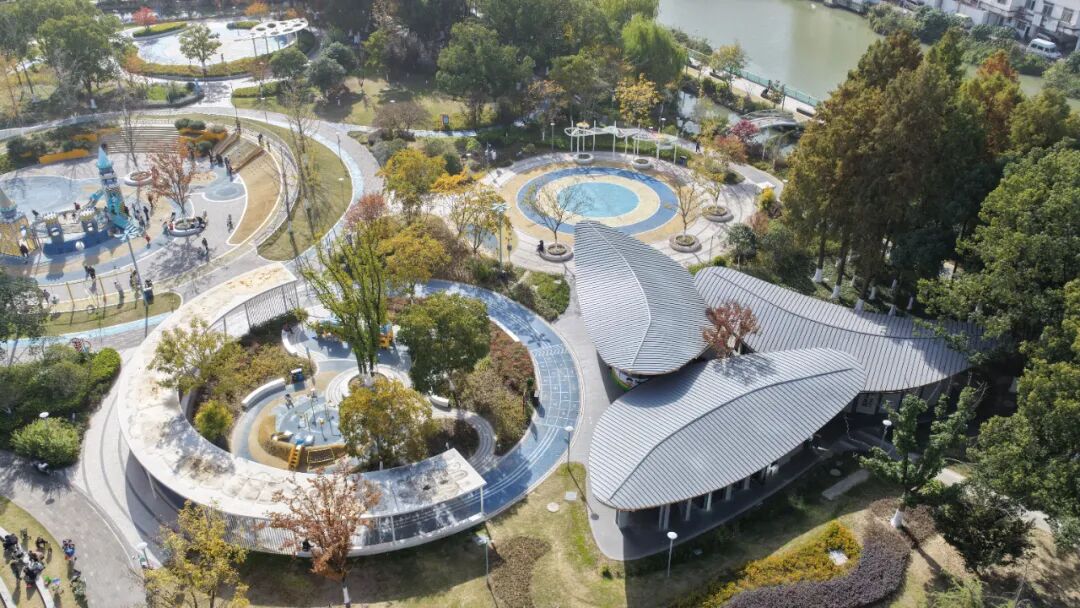 在兒童公園郁郁蔥蔥的景致間