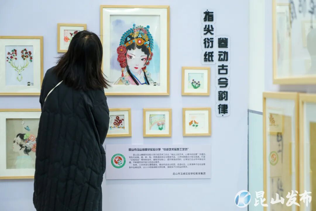 振華實驗小學衍紙展區(qū)猶如一卷立體的“紙藝昆韻”,學生們經(jīng)卷、捏、拼、貼,將普通紙條化為精美作品,以“衍紙鳳冠”為代表,將非遺昆曲元素與現(xiàn)代審美巧妙融合,展現(xiàn)了傳統(tǒng)文化在校園土壤中煥發(fā)的蓬勃生機;